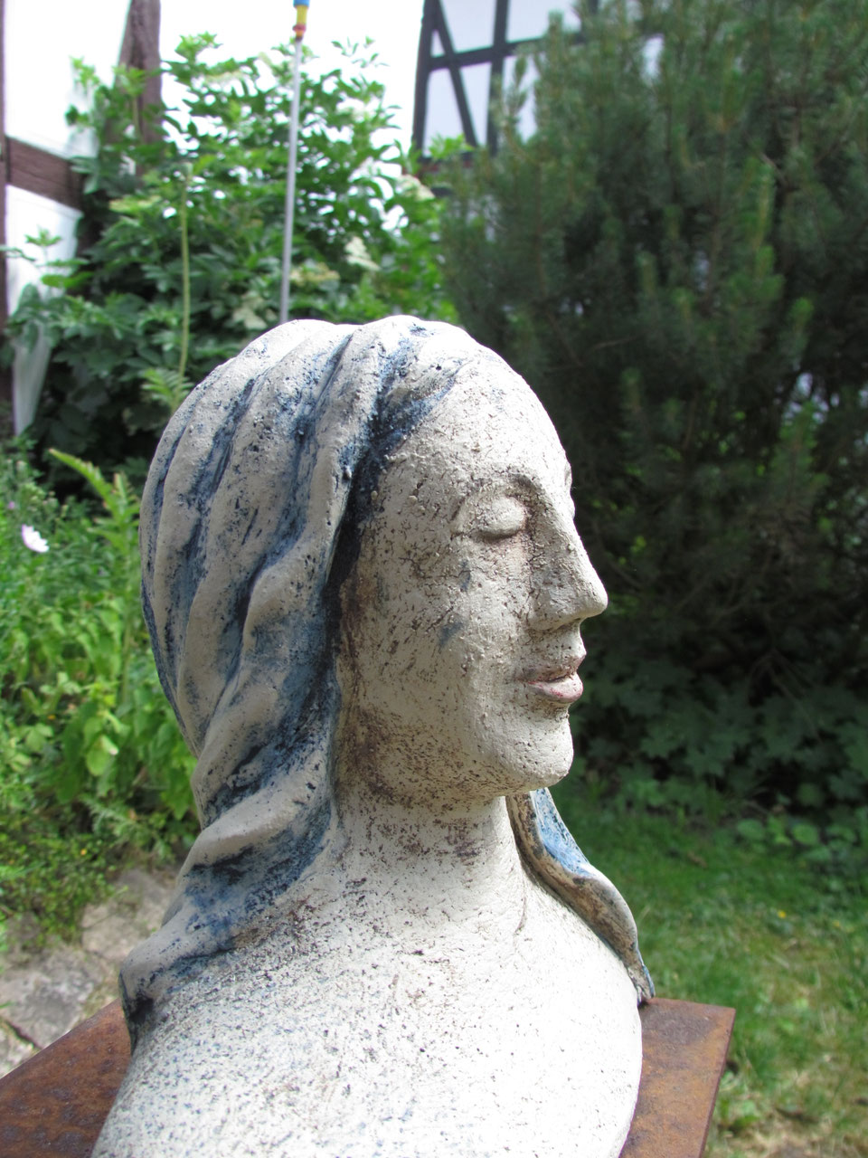 Hochgebrannt und frostfest, Büste 21,5cm hoch 24cm breit, handmodelliert, Unikat